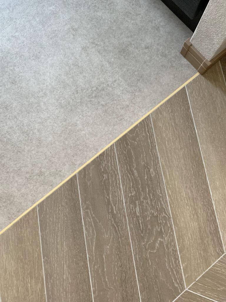 細いゴールドの見切材ですっきりと納めました